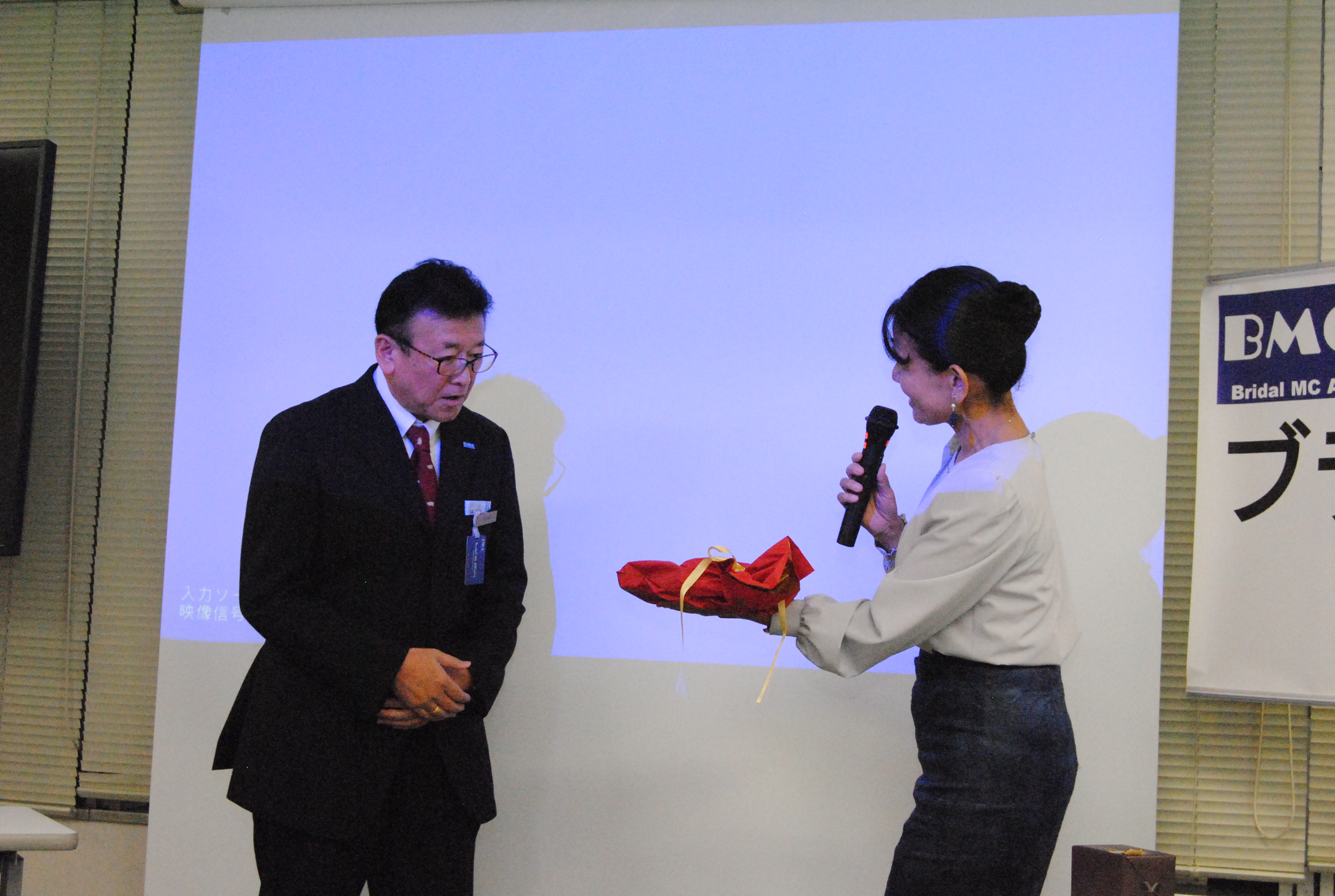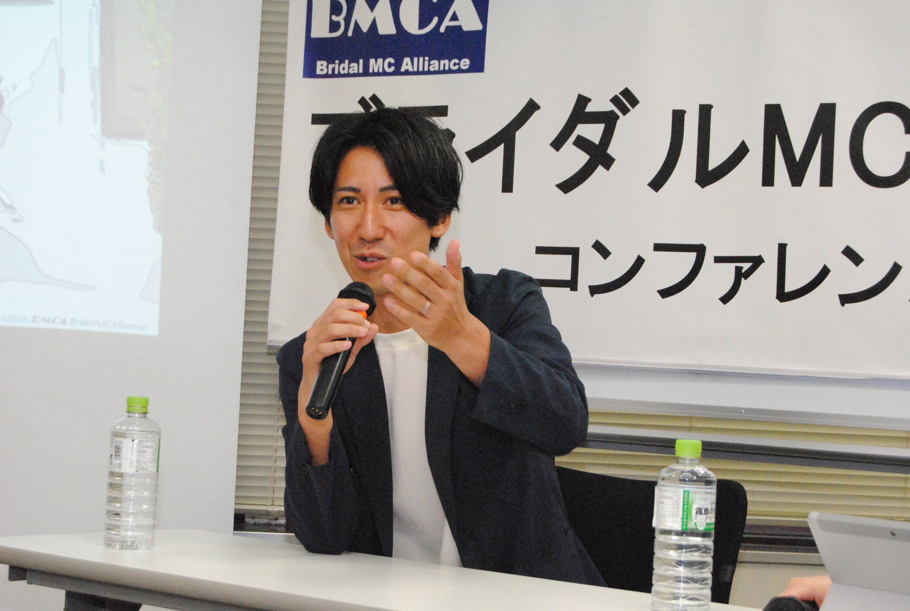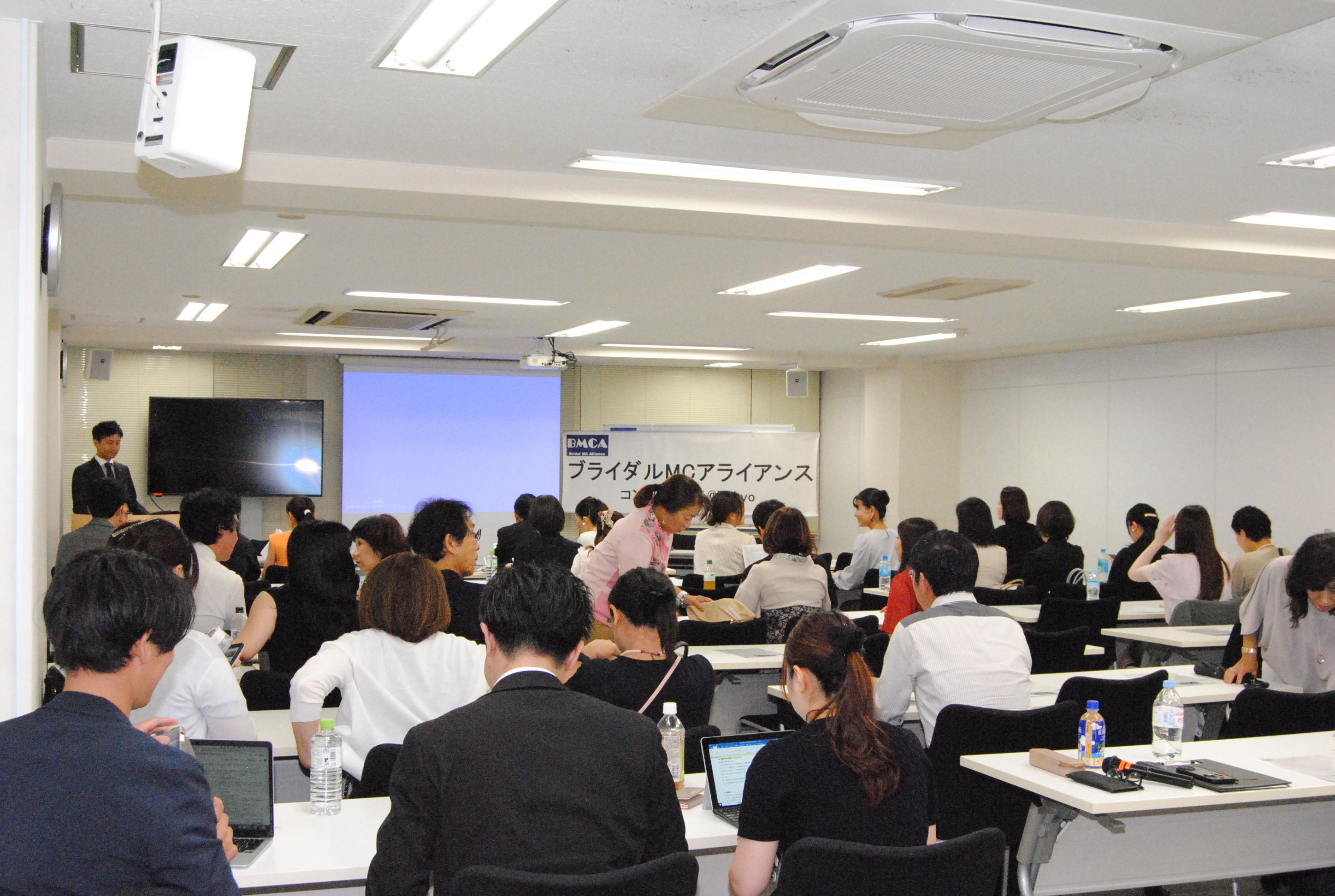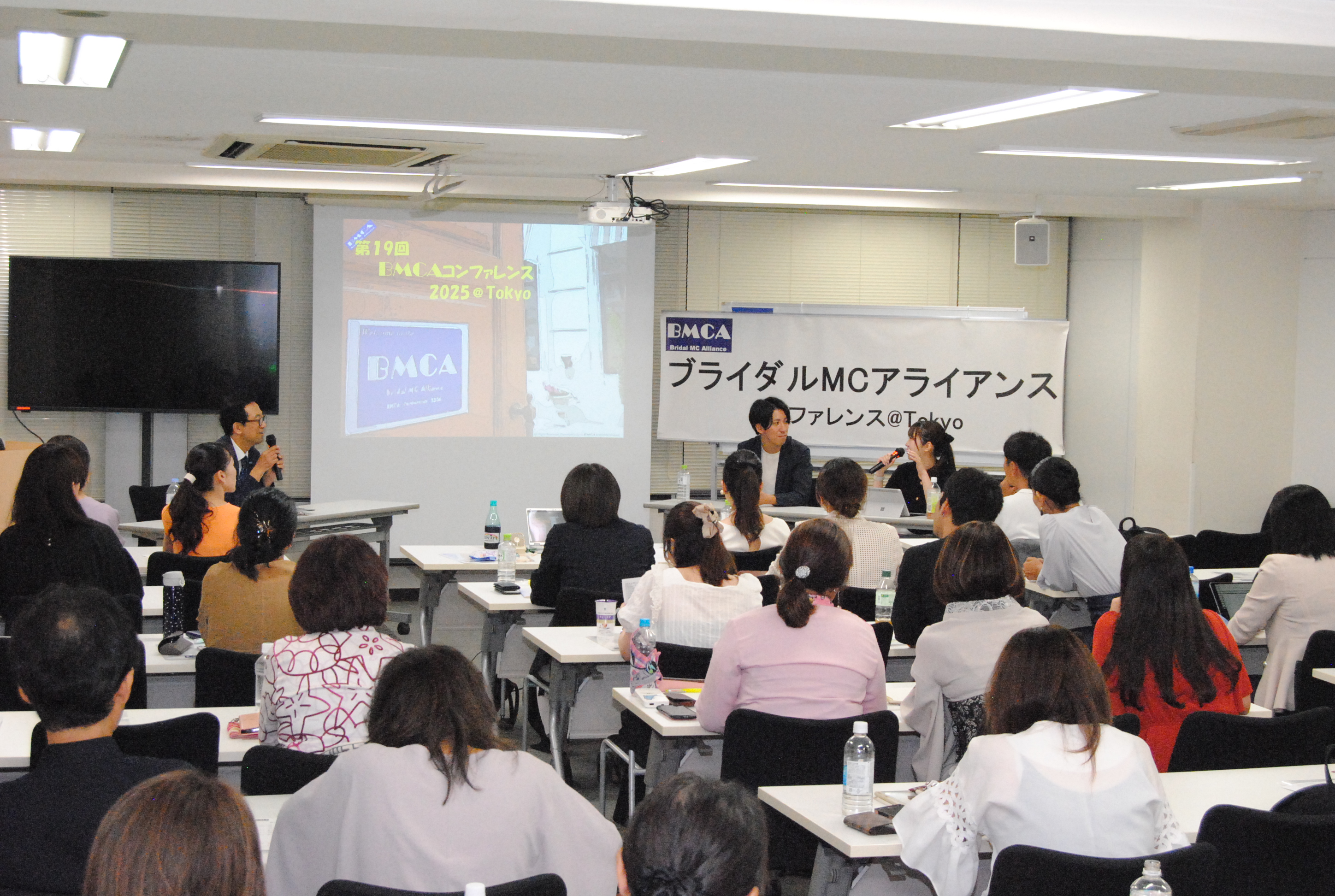 年に1回開催の年次総会(集合勉強会)であるBMCAコンファレンスを8月26日、東京中央区銀座にて開催しました。 今年はBMCA設立20周年の集合開催となりました。北は青森から、南は沖縄まで司会者、プランナー、会場キャプテン、音響スタッフ等、計57名参集しました。 今回も、総合司会は、デビュー2年目の若手MCにお願いしました。参加者みんながパワーと、元気をもらいました。 1つ目のセッションでは「BMCA20年レビュー」と題し、恋塚会長にBMCAこの20年を振り返って頂きました。 そして、「結婚式の本質を問い直す、ウェディングの現場から見えた希望と未来」をテーマにパネルディスカッションを2回戦行いました。 エンディングでは、20周年記念と言うことで、幹部有志から、恋塚会長へサプライズプレゼントが贈られました。 閉会後は、会場を近隣の飲食店に移し、37名による懇親会も行われました。たくさんの面々が意見を交わす大変有意義な1日となりました。