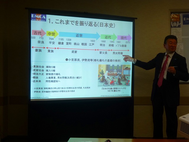 基調講演では、恋塚会長の、「ブライダル人類学・近代史」、そしてオフィス・リオ・トータル・スクール 阪上代表からは「司会者に必要な立ち居振る舞い」というタイトルで、美しい歩き方、立ち方、椅子の座り方、写真の撮られ方などレクチャー頂きました。