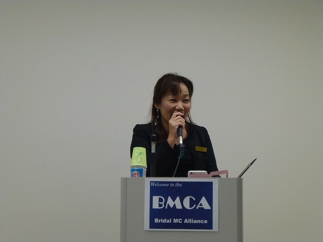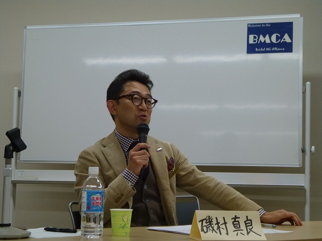 勉強会では、講演を2つ、BMCA恋塚会長の「沖縄のブライダル市場分析、MCのトークテクニック」、沖縄で活動する印象美人コンサルタントあらかき咲十美さんによる「選ばれる印象美人ブライダル司会者へ」、続いて、パネルディスカッションとして、BMCA磯村東京本部長がファシリテータとなり、パネラーとして、沖縄でブライダル、テレビ、ラジオでも活躍する現役MC 大川豊治、本村ひろみ、梅田潤の3人を迎え、沖縄と本土のウェディングの違いなどが議論されました。