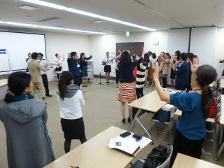 その後、本土からの参加が15名もいることから、沖縄の披露宴の締めで行われる、カチャーシーを参加者全員で踊り体験しました。