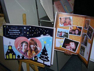 今年目に付いたものは似顔絵物です。似顔絵書きの方をブース内に座らせて実際に書いているところを見せていました。出来上がった似顔絵は、ウェルカムボード、席次表、プチギフトなどに掲載するわけです。3〜4社のブースがこれを出展していました。