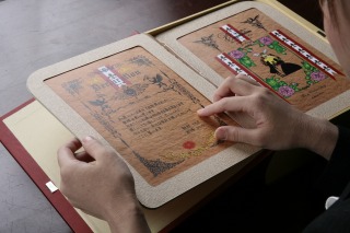 ・テールブックにセットされた結婚証明書への署名